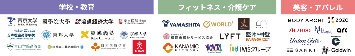 多くの企業の福利厚生サービスを担当。社内フィットネスジム、トレーニングジム、イベント、撮影、研究など用途は様々