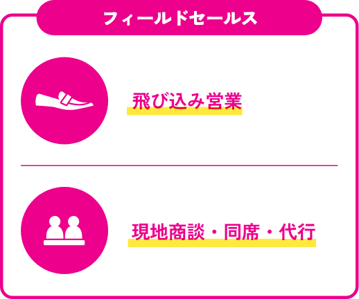 実店舗、企業、個人宅、ウェルネス・フィットネス施設などへの飛び込み営業を実施。多くの営業代行会社が避ける領域ですが、経験豊富なプロが成果にコミットし、販路拡大や新規開拓を支援します。